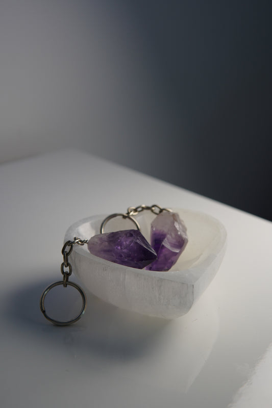 Rohstein Schlüsselanhänger - Bergkristall / Amethyst