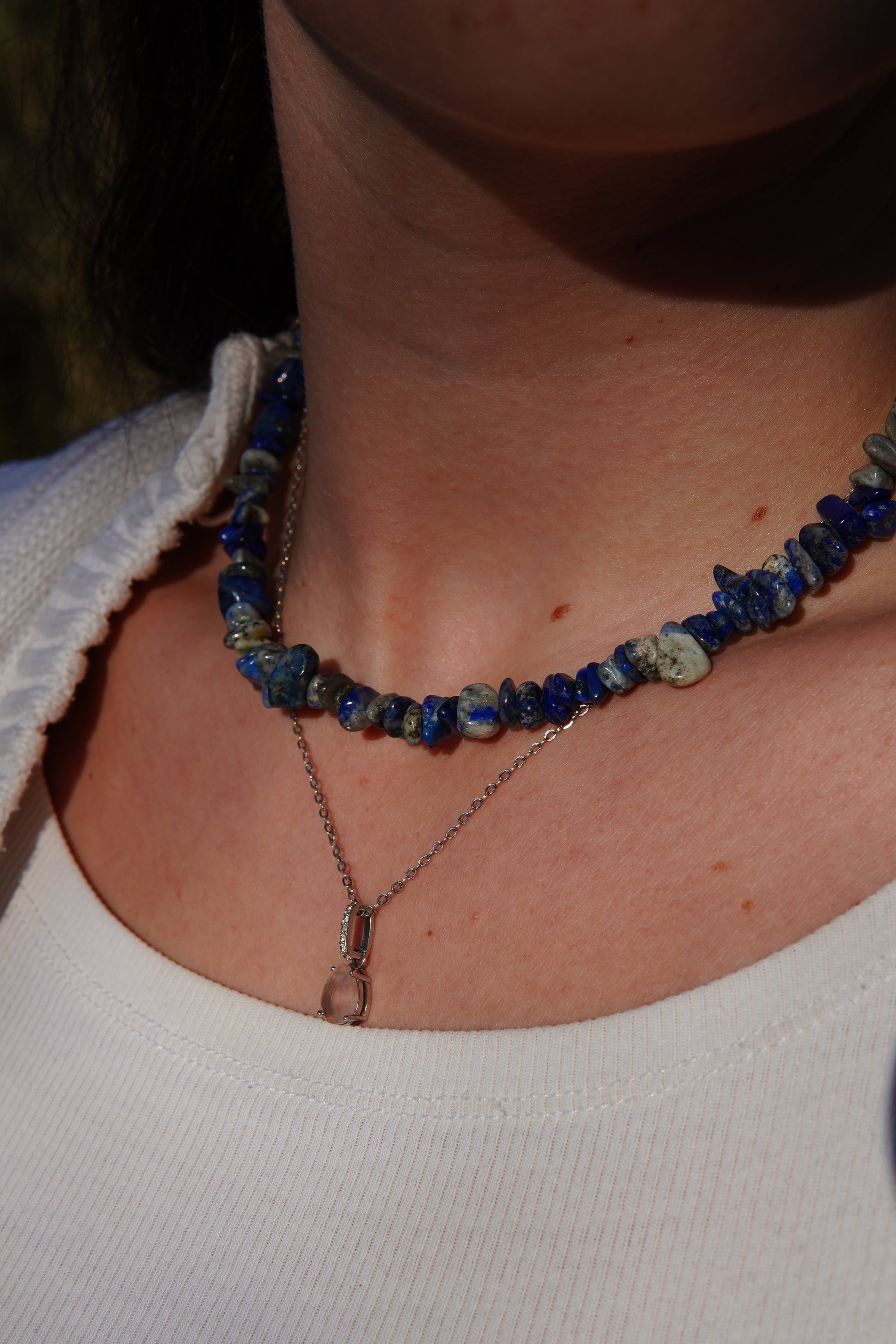 - Vermeide den Kontakt mit Chemikalien: Parfums, Haarsprays, Chlor und salziges Wasser können das Silber anlaufen lassen oder den Edelstein beschädigen.